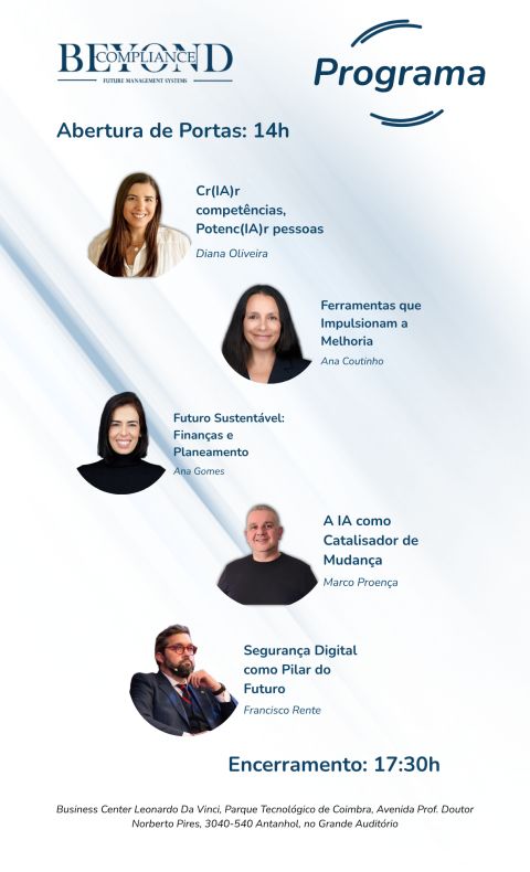No dia 09/04/26 tivemos a satisfação de participar do evento “Beyond Compliance: Future Management Systems”. Marco Proença integrou o painel de oradores representado a VirtuALL.me permitindo-nos contribuir para uma reflexão profunda sobre o futuro das organizações, a sustentabilidade humana e a saúde mental em tempos das Tecnologias Emergenrtes: “IA como o catalisador de Mudança”.