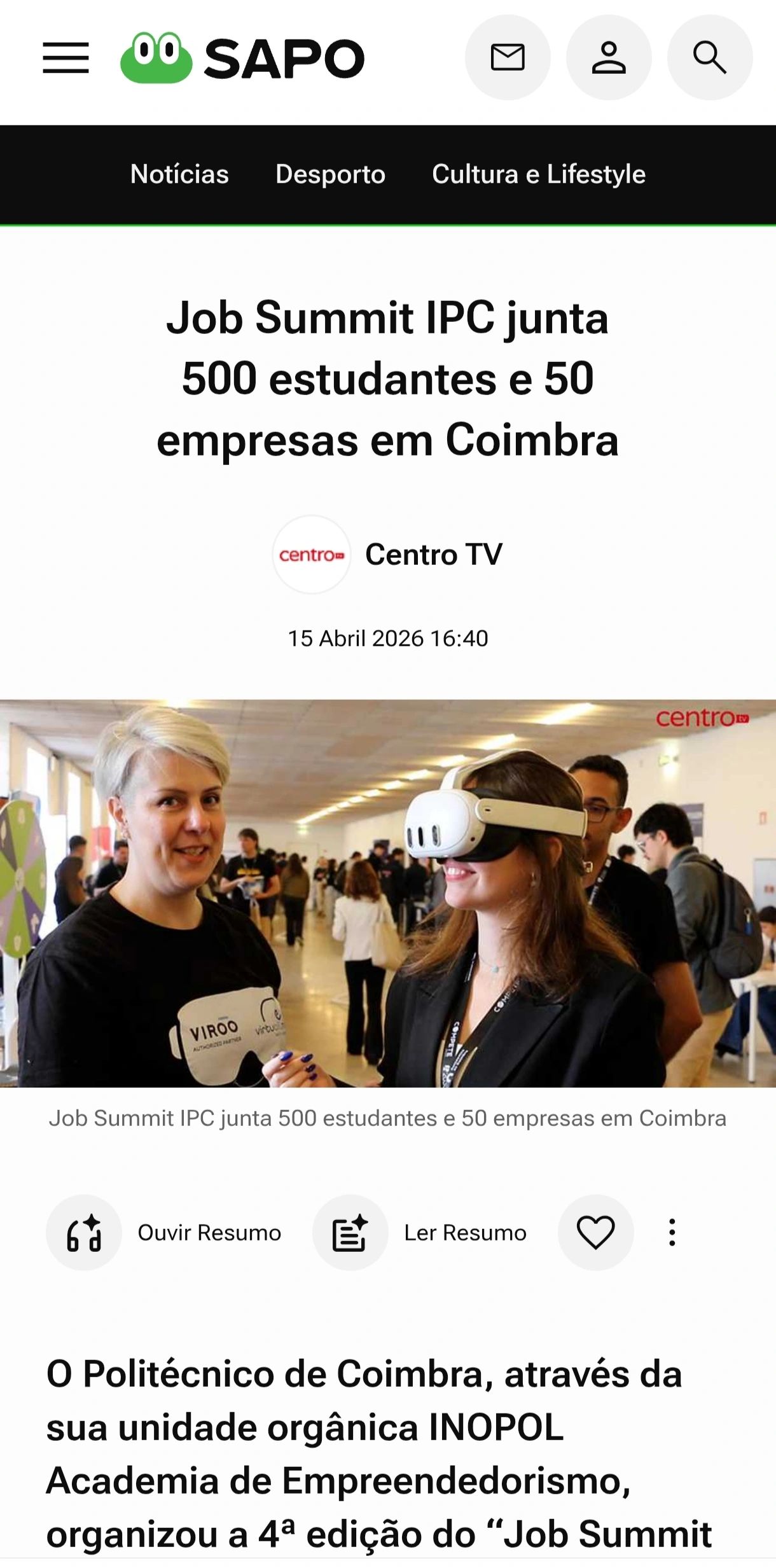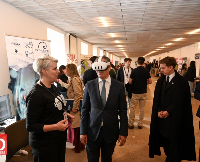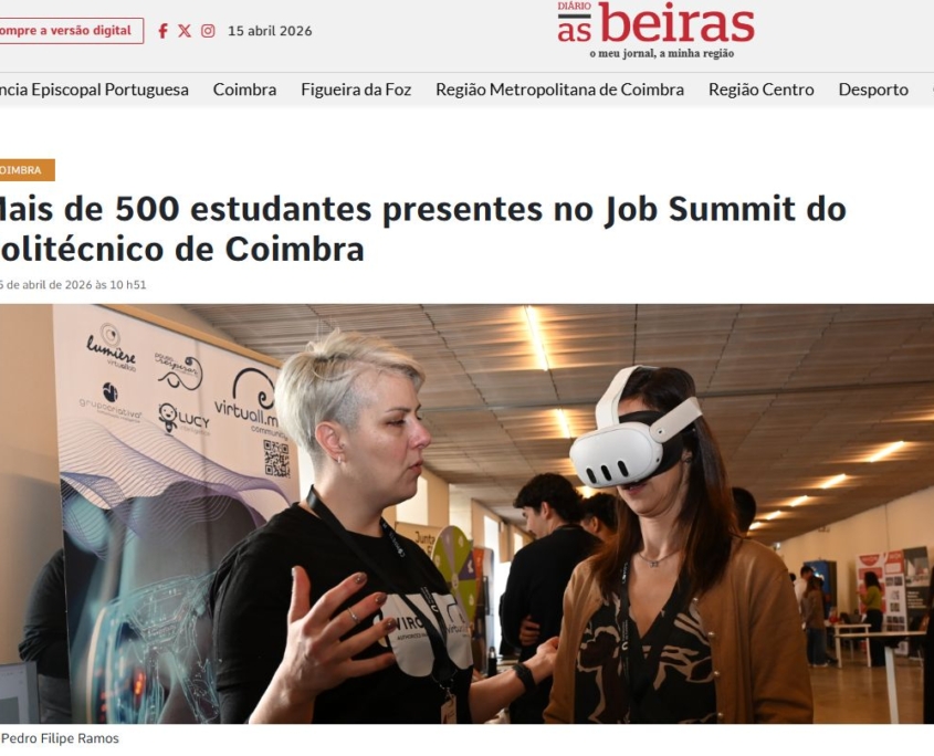 A VirtuALL.me teve a oportunidade de apresentar a tecnologia XR à mais de 500 estudantes presentes no Job Summit do Politécnico de Coimbra. Uma comunidade académica e empresarial, que experienciaram como as tecnologias XR podem ser aplicadas de modo responsável humano. Estiveram presentes os presidentes das 6 Escolas Politécnicas de Coimbra e os das respetivas Unidades Orgânicas, como também a CM Municipal de Coimbra através do Vereador Luís Filipe.