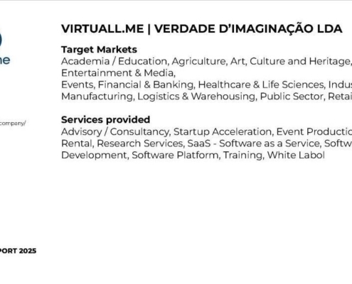 Virtuall.me reconhecida por I&D em Tecnologias Imersivas, através do Portugal XR Report 2025, uma iniciativa estratégica da APDC (Associação Portuguesa para o Desenvolvimento das Comunicações). Destaque no XR Directory(pag 56). Esta inclusão reconhece a nossa atuação como HUB de novas tecnologias I&D+i, especializado em soluções de VR e IA com valor científico e aplicabilidade no mercado. Em especial agradecemos ao Luis Bravo Martins por todo o seu apoio neste percurso.